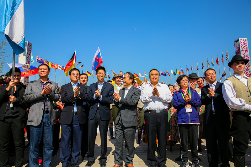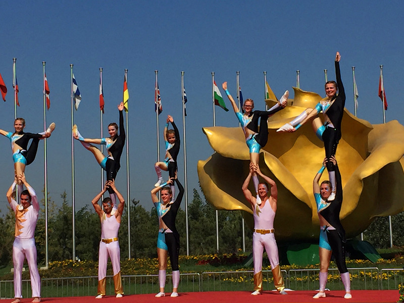 此次閉幕式演出以 “京韻中秋 絲路狂歡”為主題,在月季主題園的金月季廣場(chǎng)成功舉行。整個(gè)閉幕式為國(guó)內(nèi)外友人游客呈現(xiàn)了一場(chǎng)國(guó)際文化盛宴。來自美國(guó)、德國(guó)、加拿大、俄羅斯等13個(gè)國(guó)家的350多名演員身著盛裝為現(xiàn)場(chǎng)觀眾帶來了一場(chǎng)精彩絕倫的表演。北京市旅游發(fā)展委員會(huì)主任宋宇,北京市大興區(qū)人民政府副區(qū)長(zhǎng)楊彥光,北京市大興區(qū)宣傳部常務(wù)副部長(zhǎng)潘郁峰,北京市大興區(qū)旅游發(fā)展委員會(huì)主任顏淑敏,大興世界月季主題園相關(guān)領(lǐng)導(dǎo)和現(xiàn)場(chǎng)嘉賓、游客一同觀看了演出,并向參加本次北京國(guó)際旅游節(jié)的表演團(tuán)體代表頒發(fā)了紀(jì)念獎(jiǎng)杯。中旅會(huì)展張士京、謝建民、苗文郁等領(lǐng)導(dǎo)參加了閉幕式。