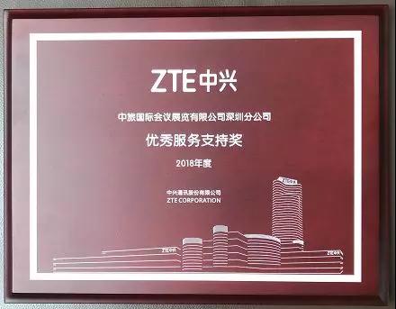 中旅會展深圳分公司作為中興通訊的戰略合作伙伴,在本次大會后榮獲“中興通訊股份有限公司2018年度優秀服務支持獎”殊榮。