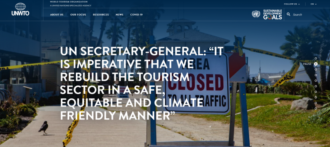 8月25日,聯合國世界旅游組織官方網站發布聯合國秘書長古特雷斯關于“新冠肺炎疫情對全球旅游業的影響”的政策簡報。簡報概述了疫情對全球旅游業發展帶來的經濟社會影響,強調了旅游業對世界經濟發展的重要性,呼吁各國采取緊急措施,促進全球旅游業復蘇轉型。